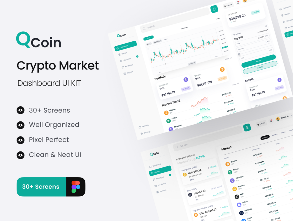 Qcoin is a Premium and High-Quality Crypto Market Dashboard UI Kit With 30+ High-Quality Screens And Easy To Use In Figma Crafted With Love And UX Friendly Design.